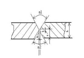 焊縫坡口形式如上圖,a1=a2=50°,板厚h=44,h1=16。