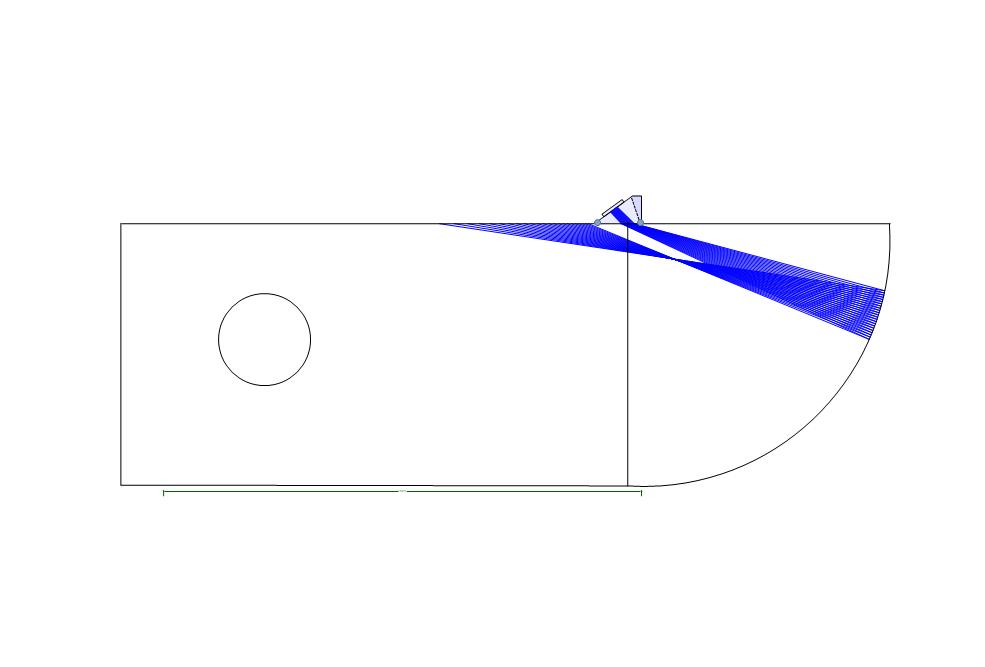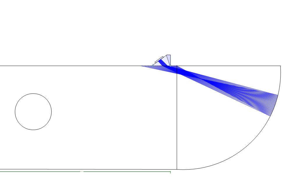 我用聲束模擬軟件模擬了下,確實(shí)會(huì)存在我說的情況-入射點(diǎn)不在探頭之上。