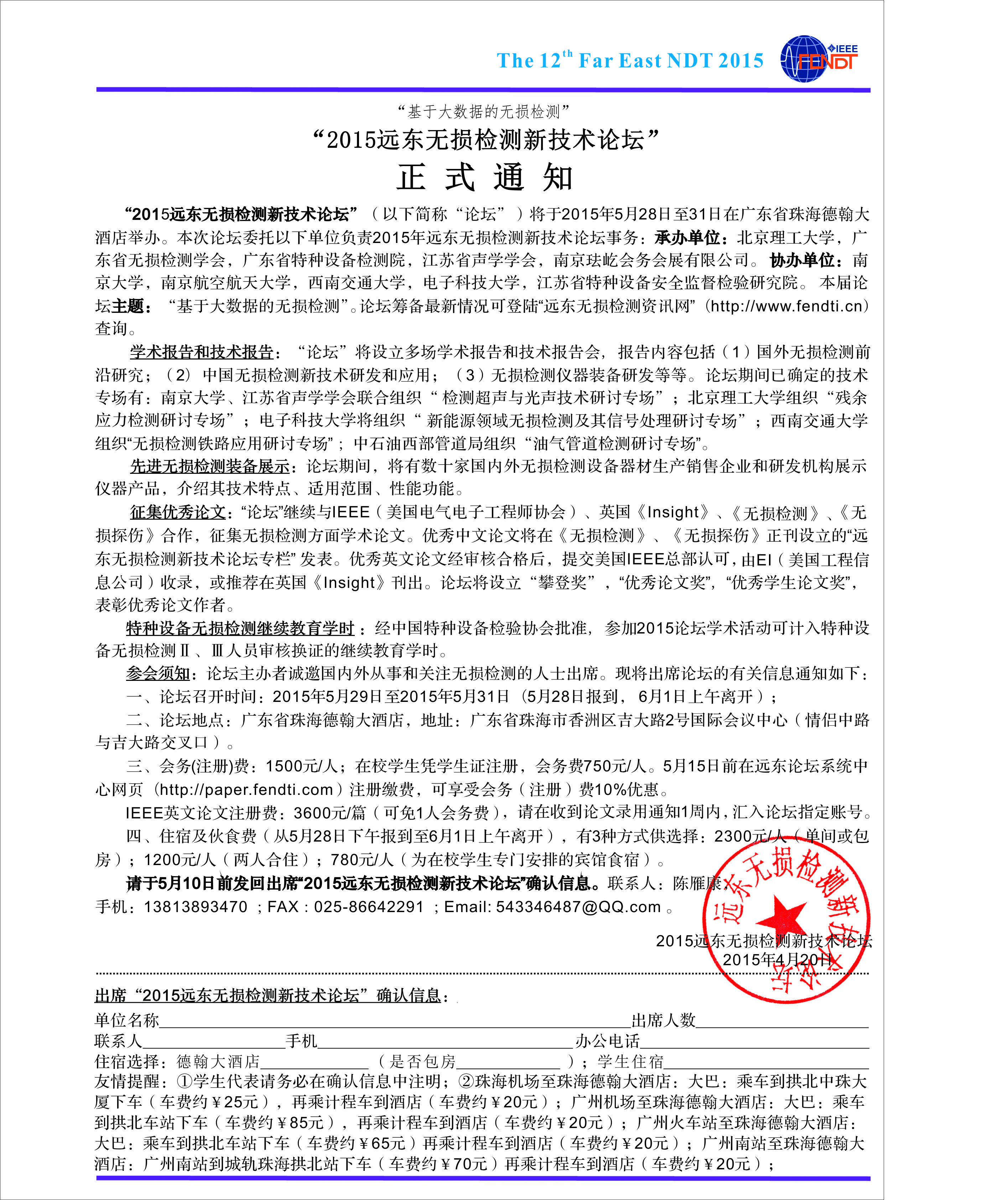 [官方發(fā)布] 2015遠(yuǎn)東無損檢測(cè)新技術(shù)論壇-正式通知