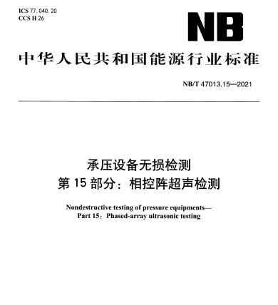NB ∕T 47013.15-2021 承壓設備無損檢測 第15部分:相控陣超聲檢測 分享。