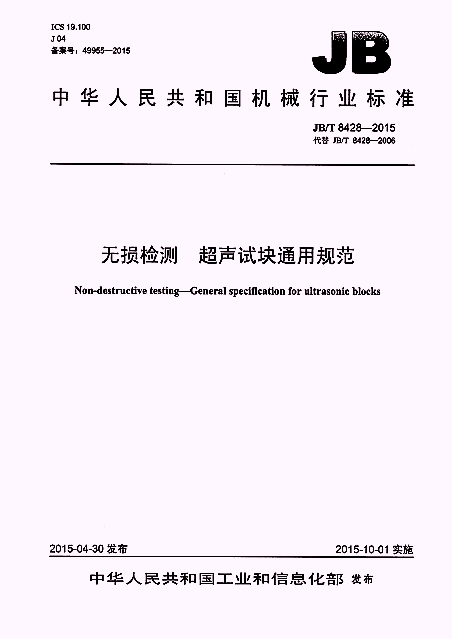 JB/T 8428-2015 無損檢測 超聲試塊通用規范