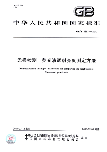 標準名稱: 無損檢測 熒光滲透劑亮度測定方法