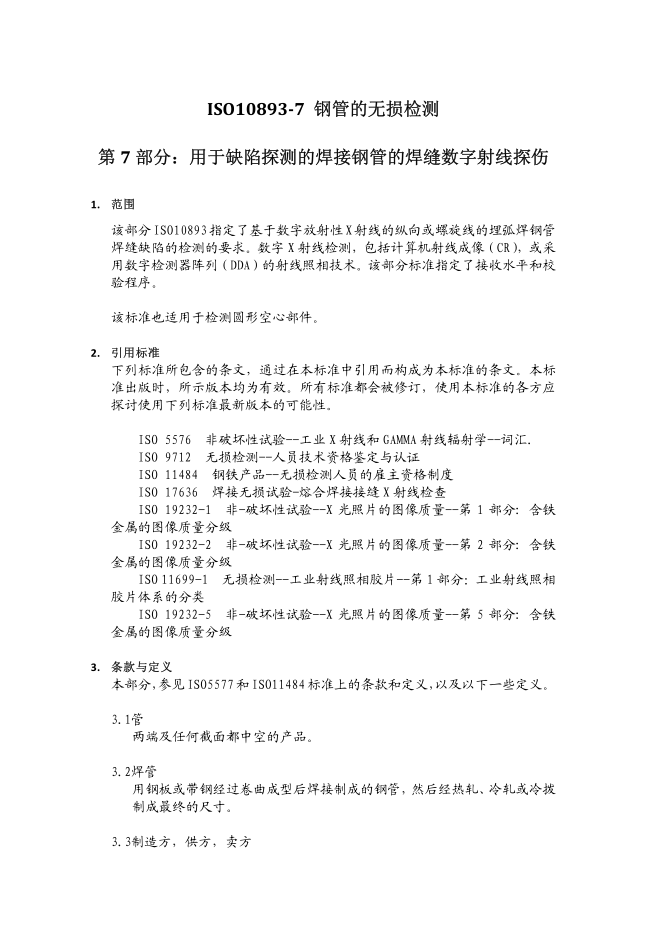 標準名稱: ISO 10893-7鋼管焊縫數字射線探傷
