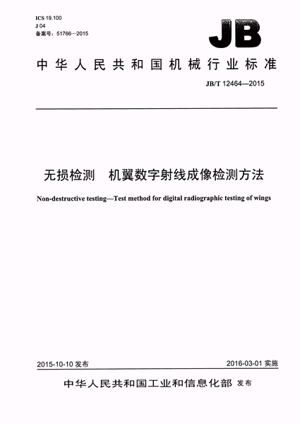 JB/T 12464-2015 無損檢測 機翼數(shù)字射線成像檢測方法