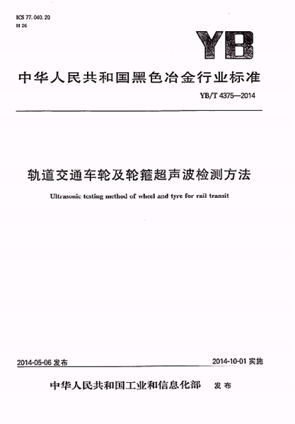 YB/T 4375-2014 軌道交通車輪及輪箍超聲波檢測方法