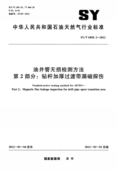 標準名稱: 油井管無損檢測方法 第2部分:鉆桿加厚過渡帶漏磁探傷