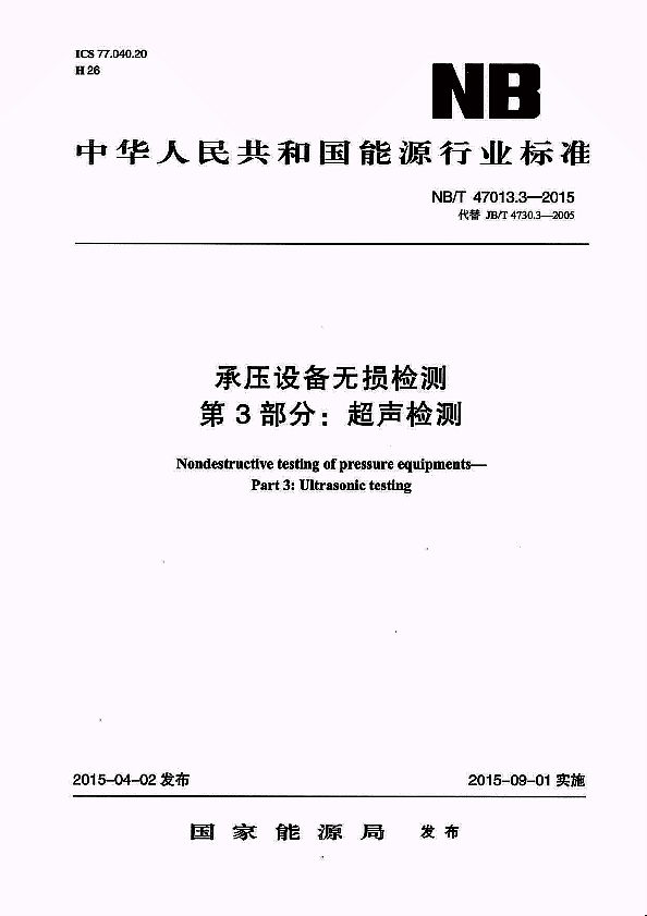 NB/T 47013.3-2015 承壓設備無損檢測 第3部分:超聲檢測