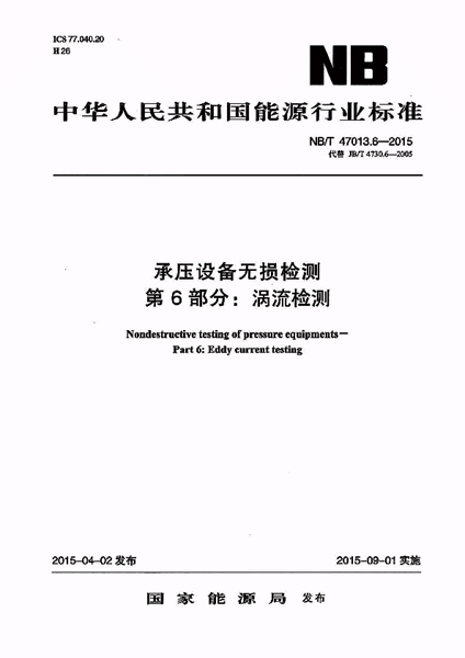 NB/T 47013.6-2015 承壓設備無損檢測 第6部分:渦流檢測