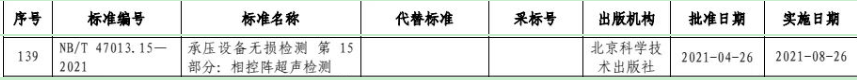 標(biāo)準(zhǔn)名稱: 相控陣超聲檢測