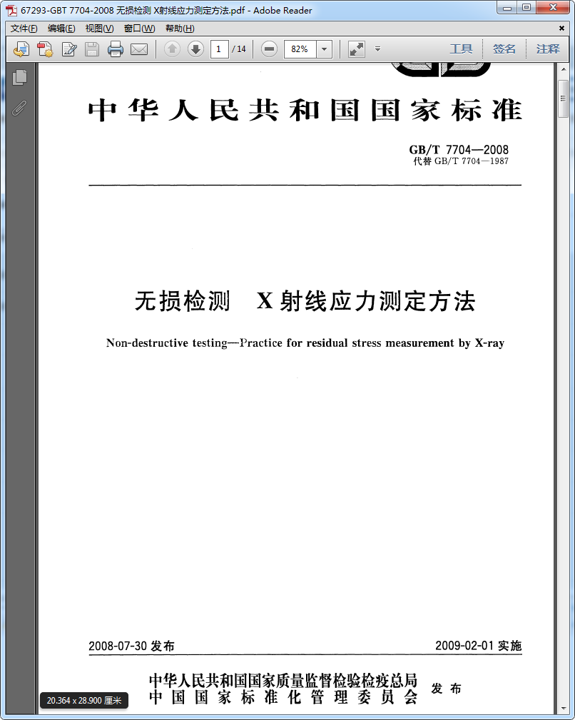 [GB/T 7704-2008]無損檢測 X射線應力測定方法
