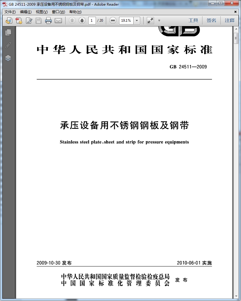 [GB 24511-2009]承壓設備用不銹鋼鋼板及鋼帶