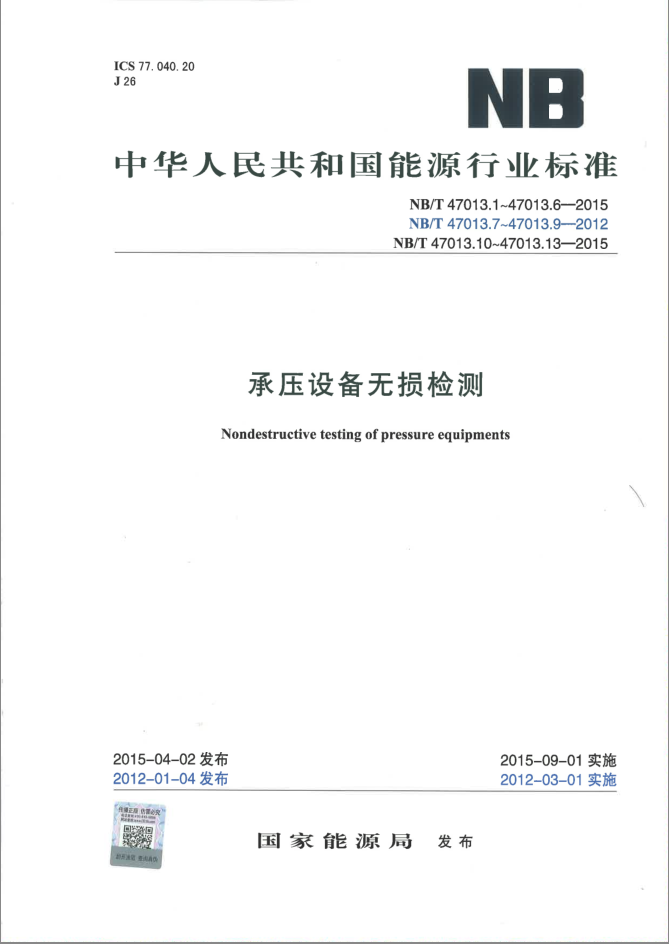 標準名稱: NBT47013.1~13 -2015 承壓設備無損檢全套(正式版)-2022年