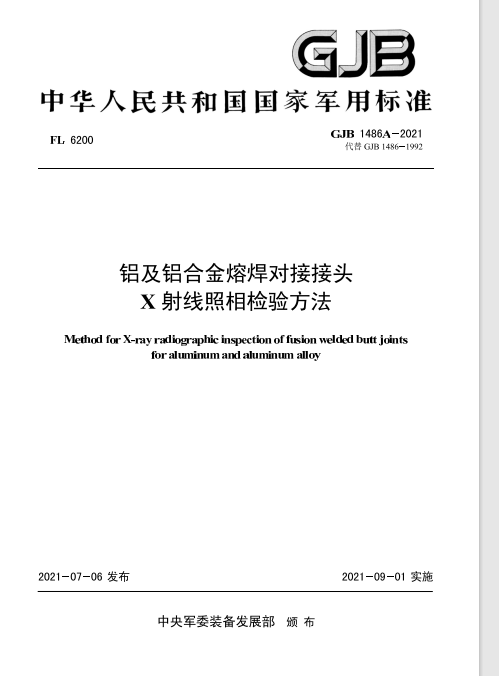 標準名稱: 鋁及鋁合金熔焊對接接頭x射線照相檢驗方法