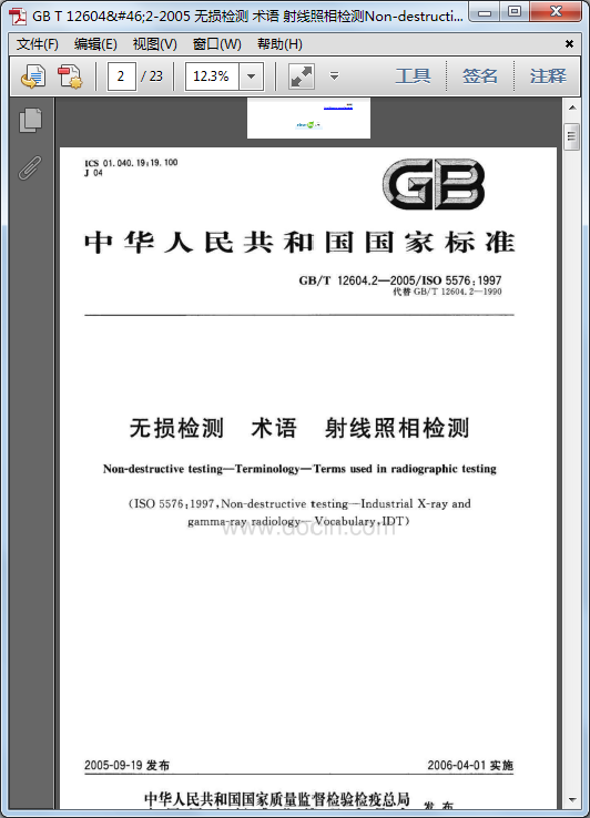 [GB/T 12604.2-2005]無損檢測 術語 射線照相檢測