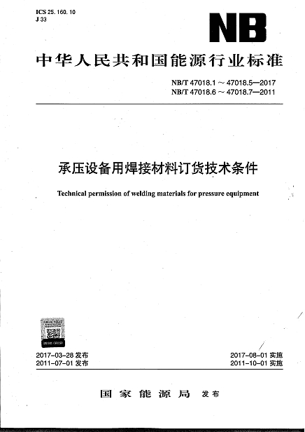 NB/T 47018.1~5-2017( 47018.6~7-2011) 承壓設(shè)備用焊接材料訂貨技術(shù)條件