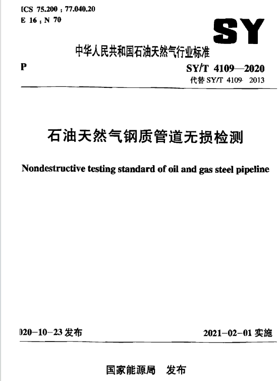 石油天然氣鋼制管道無損檢測 SY/T 4109-2020