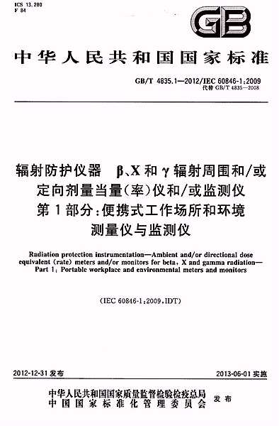 GB/T4835的本部分適用于測量由外部β、X和γ輻射產(chǎn)生的周圍劑量當量(率)和/或定向劑量當量(率)的劑量當量(率)儀和/或監(jiān)測儀(按ICRU47號報告的建議)。