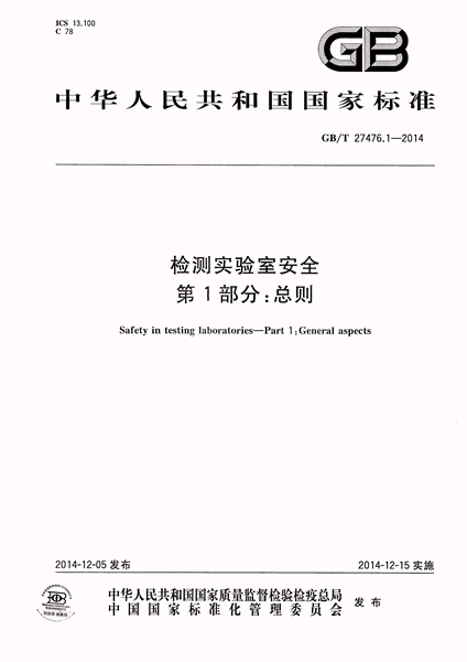 GB/T 27476.1-2014 檢測實(shí)驗(yàn)室安全 第1部分:總則