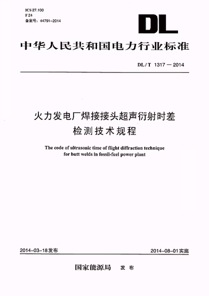 標準名稱: 火力發電廠焊接接頭超聲衍射時差檢測技術規程