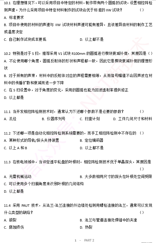 微信公眾號后臺發送“PAUT練習題”,獲得更多練習題。