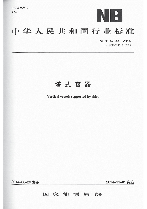 資料名稱: NB/T 47041-2014 塔式容器