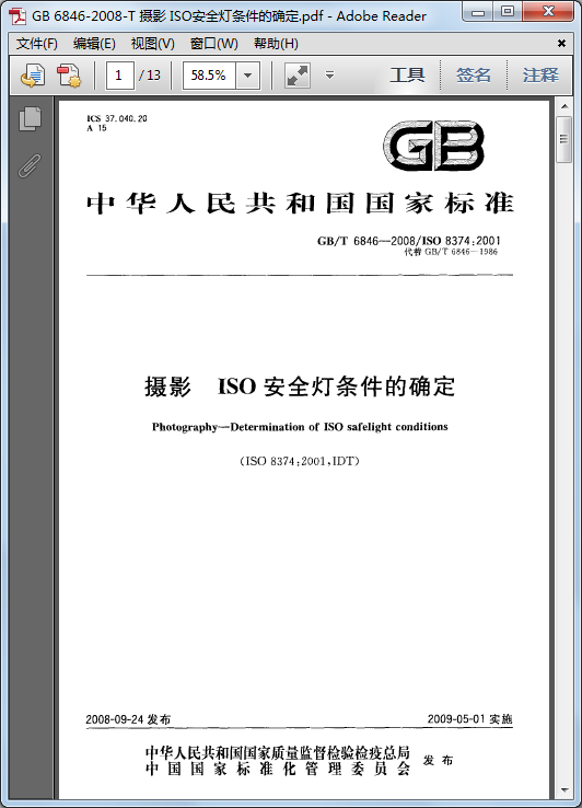 [GB/T 6846-2008]攝影 ISO安全燈條件的確定