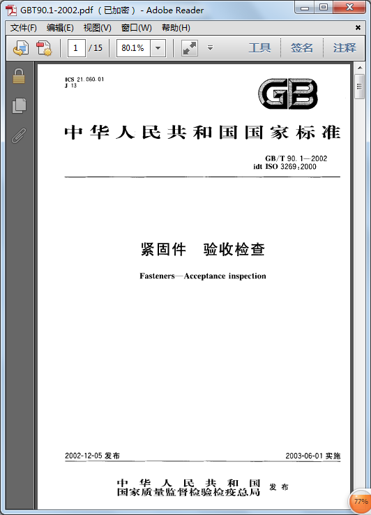 [GB/T 90.1-2002]緊固件 驗收檢查