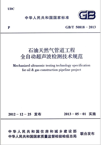 GB/T 50818-2013 石油天然氣管道工程全自動超聲波檢測技術規范