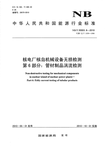 標(biāo)準(zhǔn)名稱: 核電廠核島機(jī)械設(shè)備無(wú)損檢測(cè) 第6部分:管材制品渦流檢測(cè)