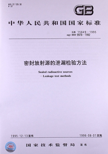 GB 15849-1995 密封放射源的泄漏檢驗方法