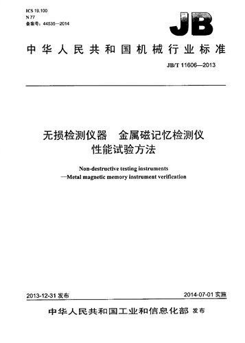 JB/T 11606-2013 無損檢測儀器 金屬磁記憶檢測儀 性能試驗方法