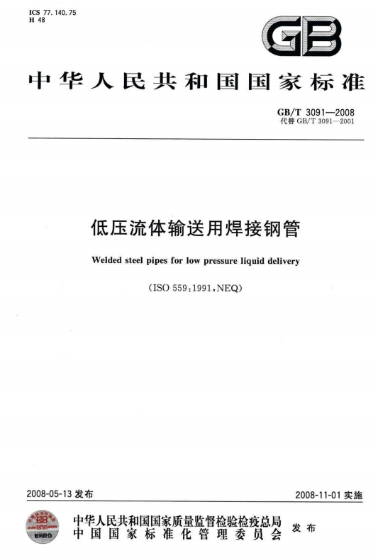 GBT 3091-2008 低壓流體輸送用焊接鋼管