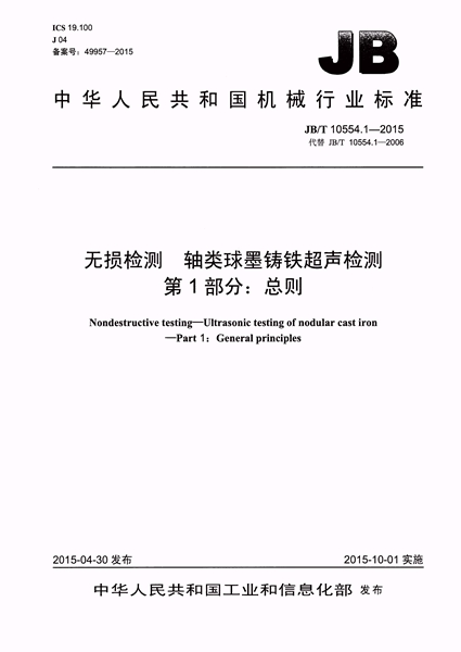 JB/T 10554.1-2015 無損檢測 軸類球墨鑄鐵超聲檢測 第1部分:...