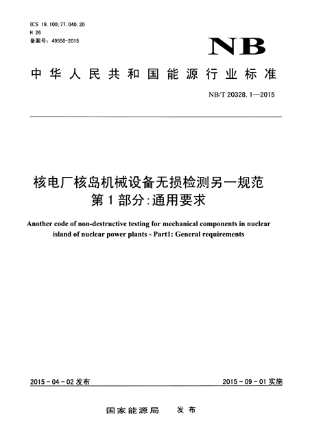 標(biāo)準(zhǔn)名稱(chēng): 核電廠核島機(jī)械設(shè)備無(wú)損檢測(cè)另一規(guī)范 第1部分:通用要求