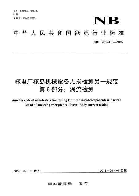 標準名稱: 核電廠核島機械設(shè)備無損檢測另一規(guī)范 第6部分:渦流檢測