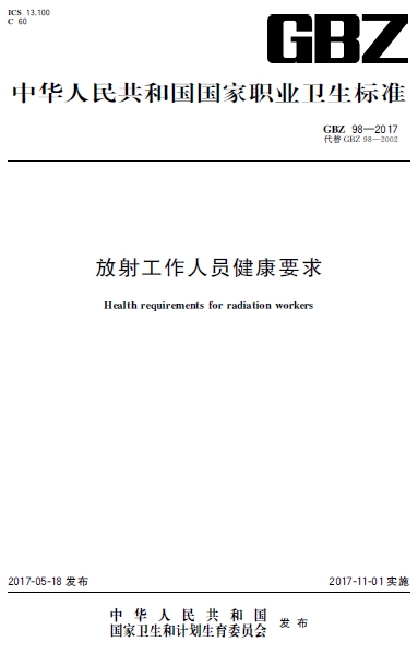資料名稱: GBZ 98-2017 放射工作人員健康要求